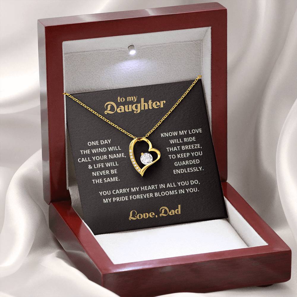 Personalized Message Card: To My Daughter - When you took your first breath, I told you, I love you. I’d use my last breath to tell you the same. You were and always will be the best thing that ever happened to me. Believe in yourself as much as I believe in you. I held this necklace to my heart and filled it with my love to start. If we’re apart and you need me near, hold it close — I’m always here. Love, Dad