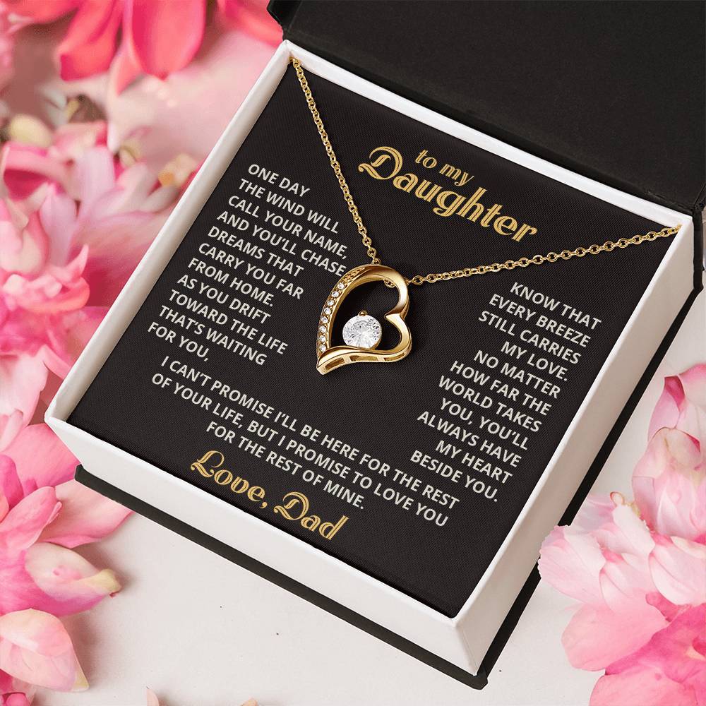 Personalized Message Card: To My Daughter - One day the wind will call your name, and you’ll chase dreams that carry you far from home. As you drift toward the life that’s waiting for you, know that every breeze still carries my love. No matter how far the world takes you, you’ll always have my heart beside you. I can’t promise I’ll be here for the rest of your life, but I promise to love you for the rest of mine. Love, Dad