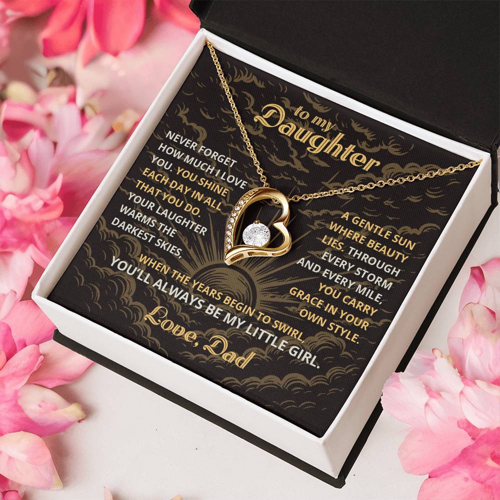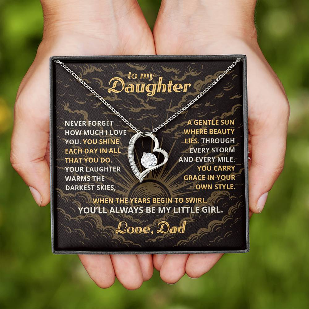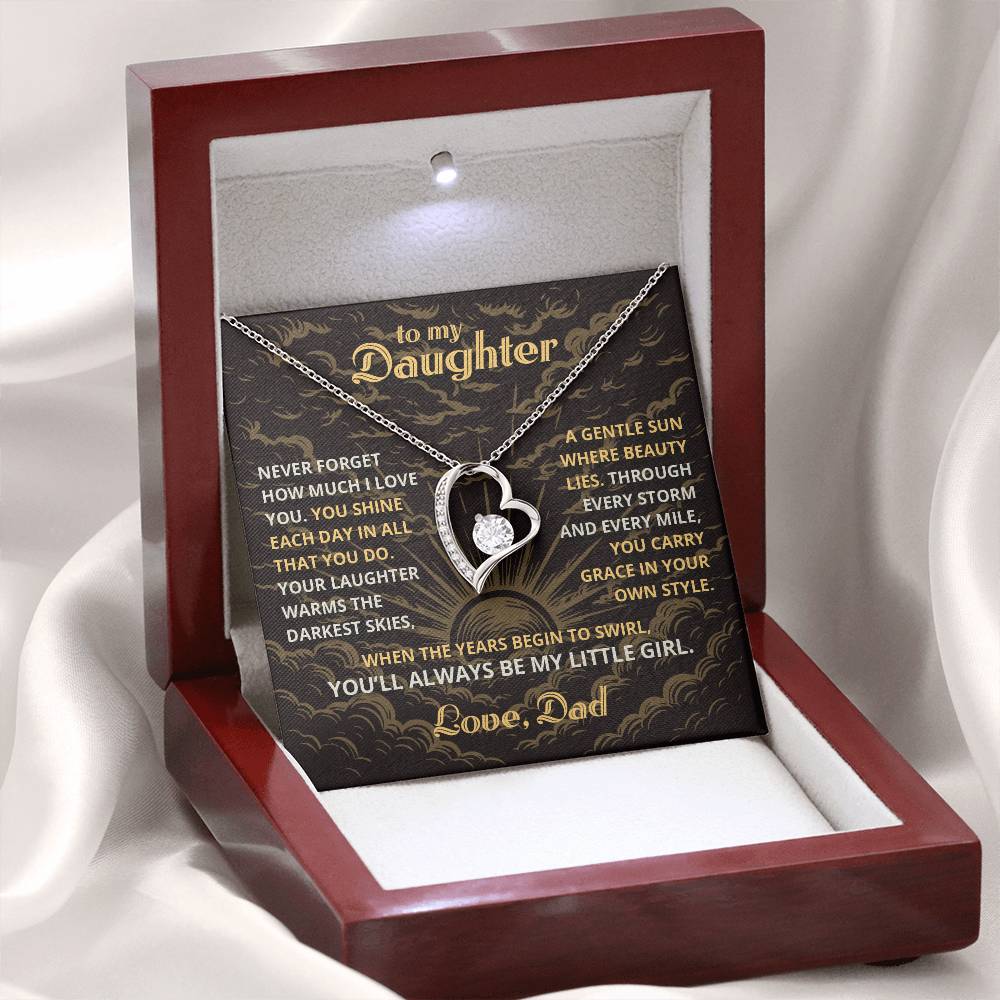 Personalized Message Card: To My Daughter - When you took your first breath, I told you, I love you. I’d use my last breath to tell you the same. You were and always will be the best thing that ever happened to me. Believe in yourself as much as I believe in you. I held this necklace to my heart and filled it with my love to start. If we’re apart and you need me near, hold it close — I’m always here. Love, Dad