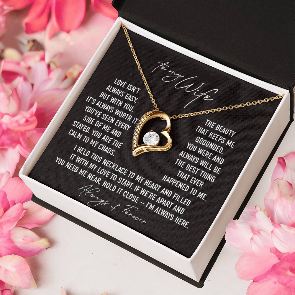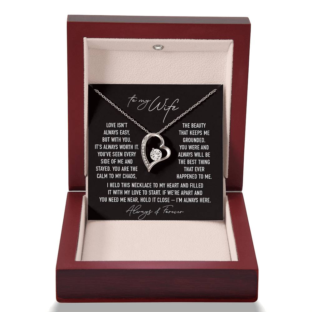 The Forever Love Necklace is your guaranteed heart-melter — a dazzling 6.5mm cubic zirconia crystal framed in a polished heart pendant, surrounded by a constellation of smaller stones for extra brilliance. Finished in your choice of white or yellow gold. Beautiful, timeless, and ready to secure your hero status the moment she opens the box.