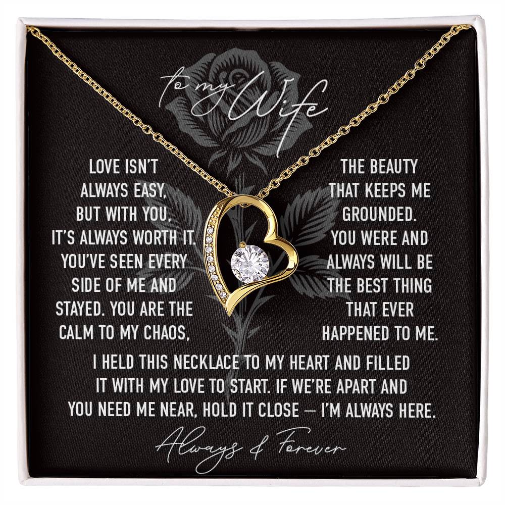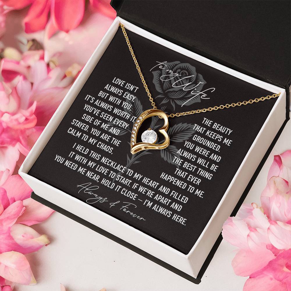The Forever Love Necklace is your guaranteed heart-melter — a dazzling 6.5mm cubic zirconia crystal framed in a polished heart pendant, surrounded by a constellation of smaller stones for extra brilliance. Finished in your choice of white or yellow gold. Beautiful, timeless, and ready to secure your hero status the moment she opens the box.