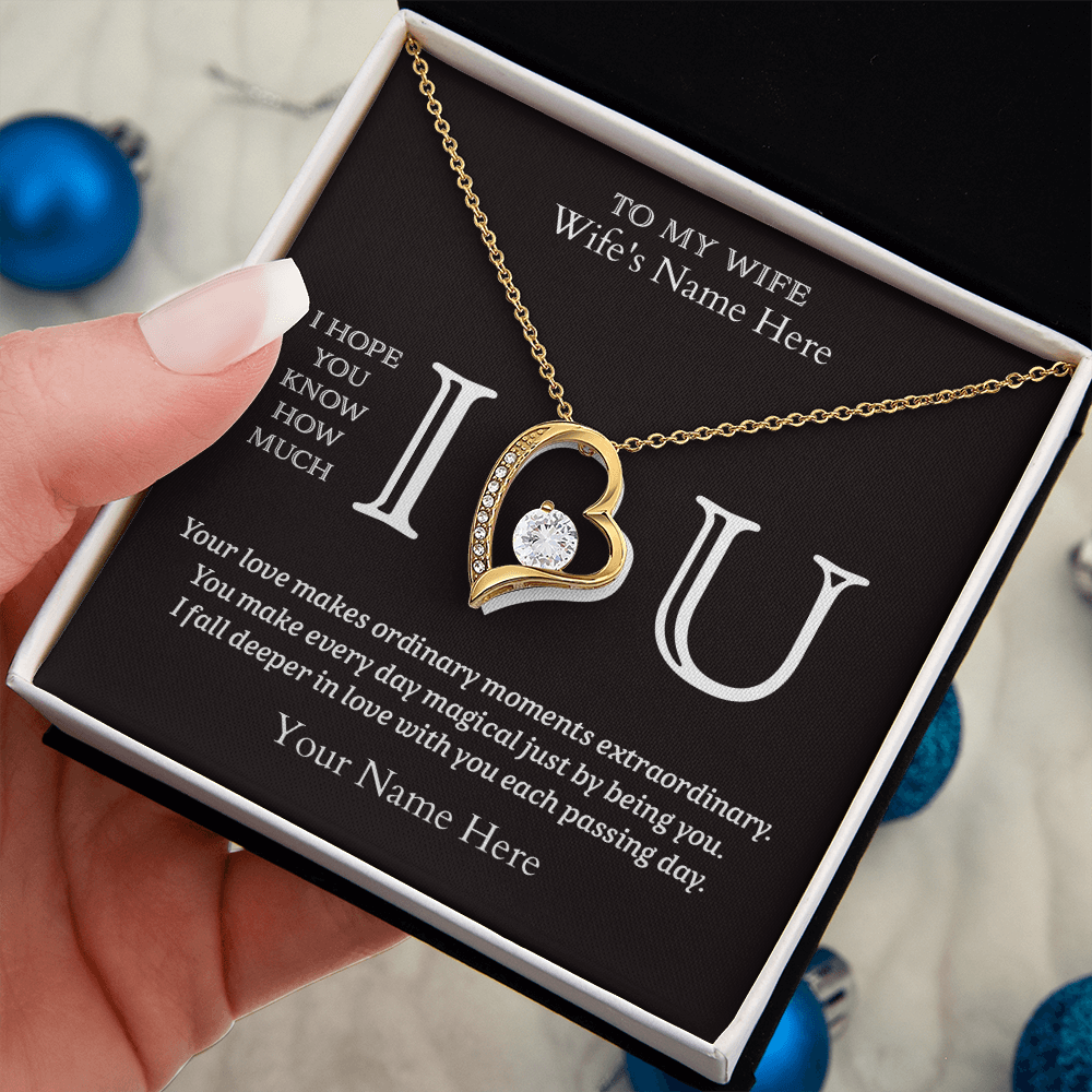 Personalized Message Card: To My Wife (wife's name here) - I hope you know how much I Heart U. Your love makes ordinary moments extraordinary. You make every day magical just by being you. I fall deeper in love with you each passing day. (insert your name here)