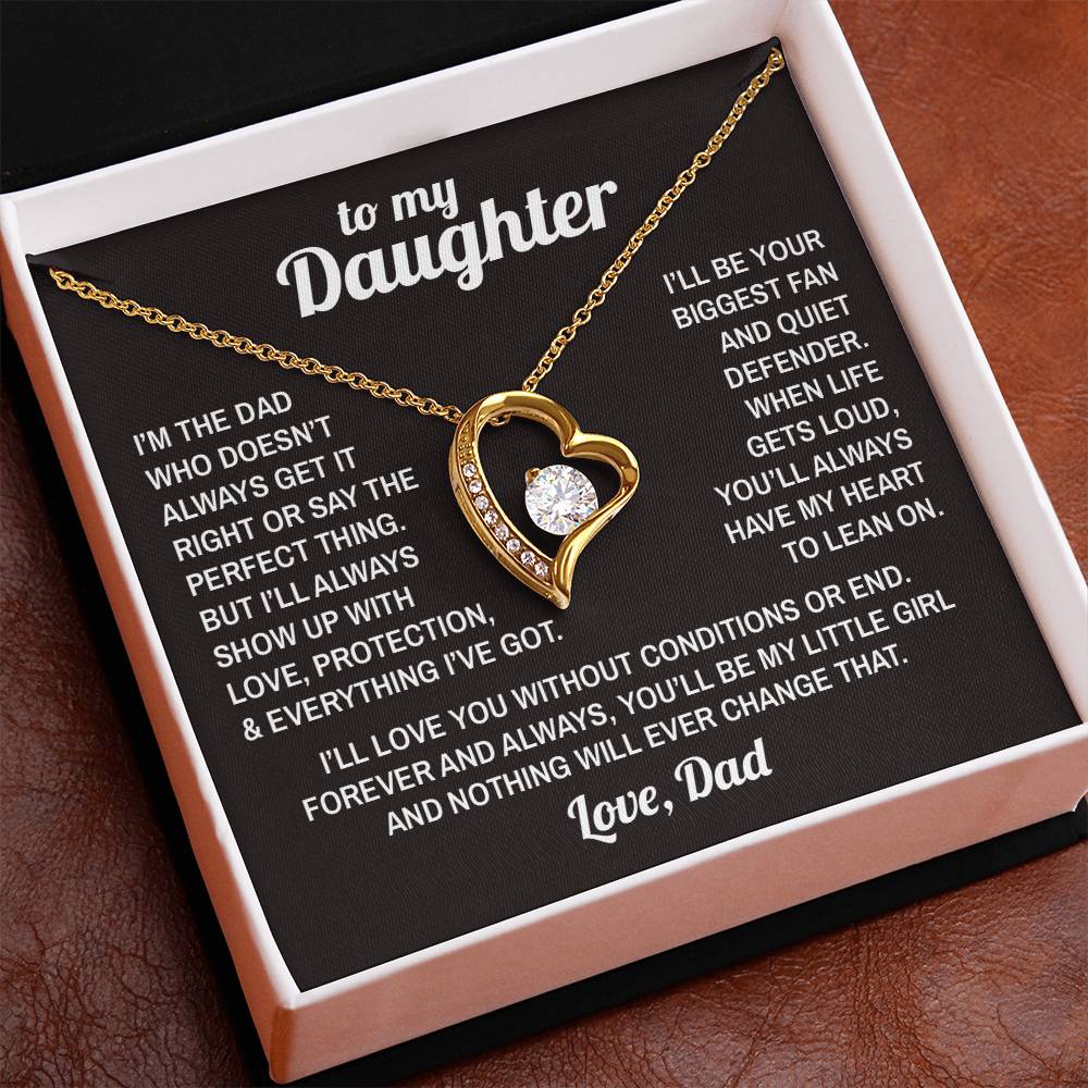 Personalized Message Card: To My Daughter - I’m the dad who doesn’t always get it right or say the perfect thing. But I’ll always show up with love, protection, and everything I’ve got. I’ll be your biggest fan and quiet defender. When life gets loud, you’ll always have my heart to lean on. I’ll love you without conditions or end. Forever and always, you’ll be my little girl, and nothing will ever change that. Love, Dad