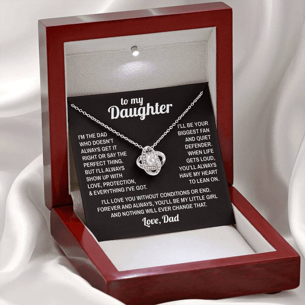 A symbol of love that never loosens its hold. The Love Knot Necklace represents the unbreakable bond between you and your daughter — crafted with sparkling cubic zirconia stones to capture her smile in every light.