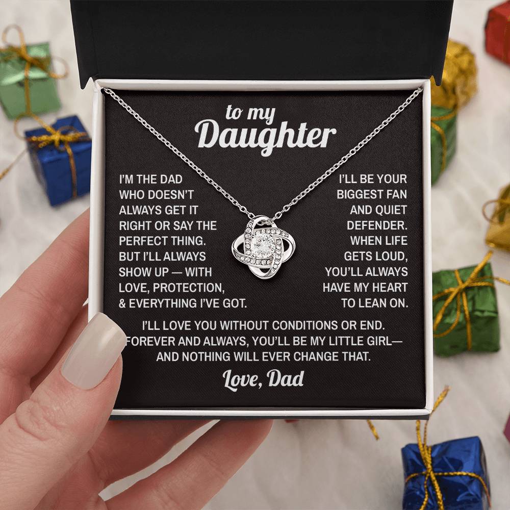 Personalized Message Card: To My Daughter. I'm the dad who doesn’t always get it right or say the perfect thing. But I’ll always show up — with love, protection, and everything I’ve got. I’ll be your biggest fan and quiet defender. When life gets loud, you’ll always have my heart to lean on. I’ll love you without conditions or end. Forever and always, you’ll be my little girl — and nothing will ever change that. Love, Dad.