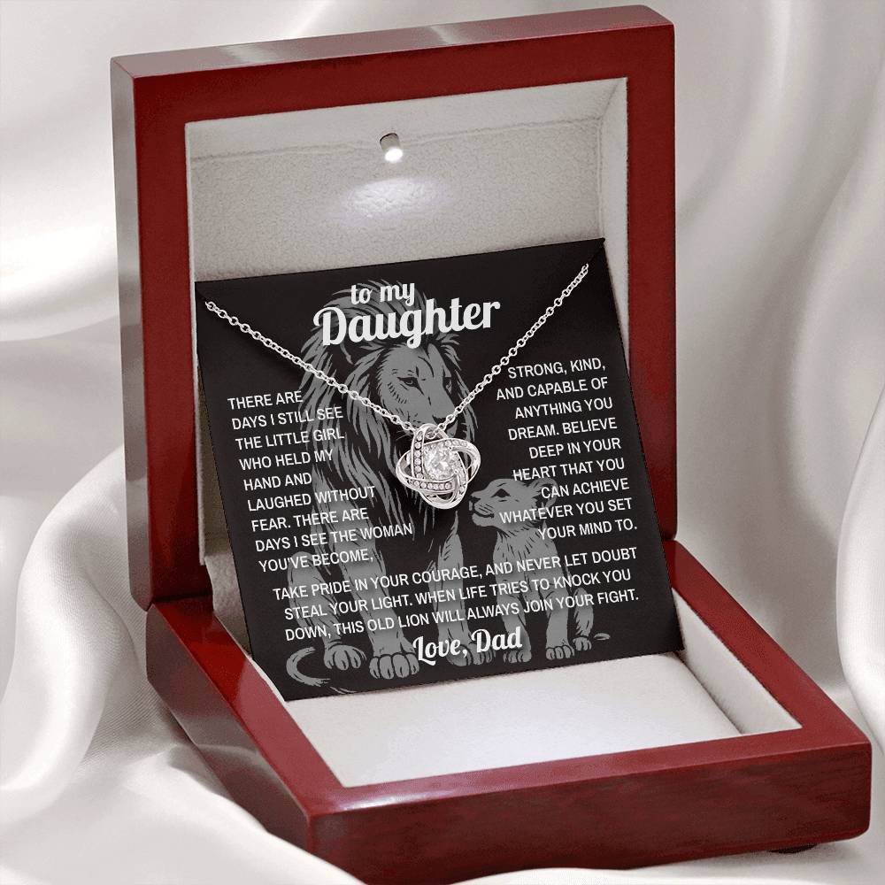 A symbol of love that never loosens its hold. The Love Knot Necklace represents the unbreakable bond between you and your daughter — crafted with sparkling cubic zirconia stones to capture her smile in every light.