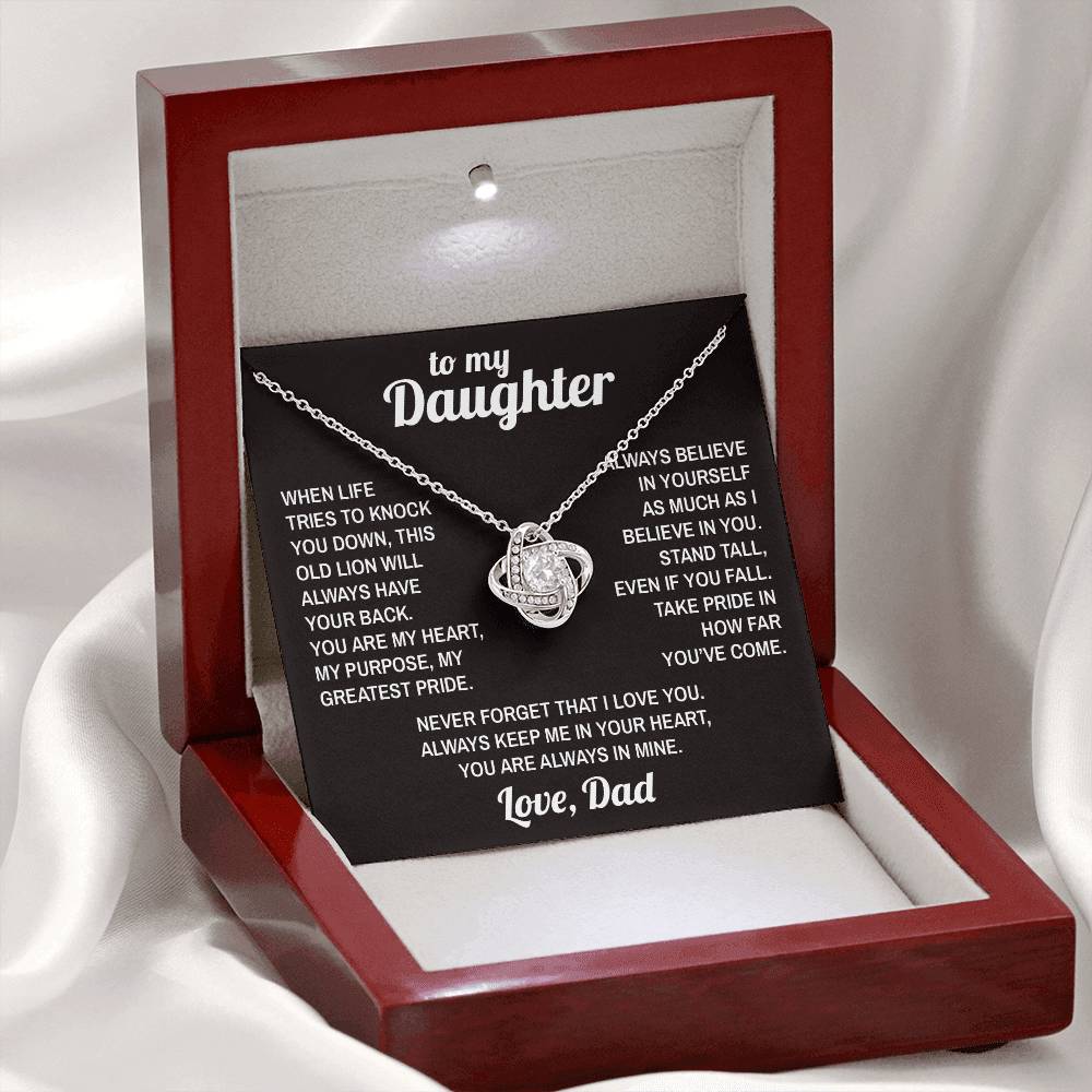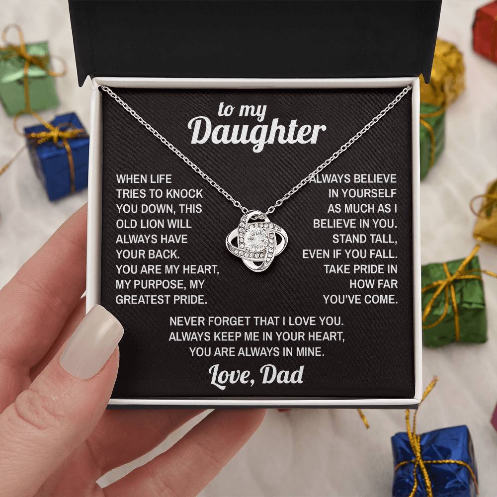Personalized Message Card: To My Daughter. When life tries to knock you down, this old lion will always have your back. You are my heart, my purpose, my greatest pride. Always believe in yourself as much as I believe in you. Stand tall, even if you fall. Take pride in how far you’ve come. Never forget that I love you. Always keep me in your heart, you are always in mine. Love, Dad.