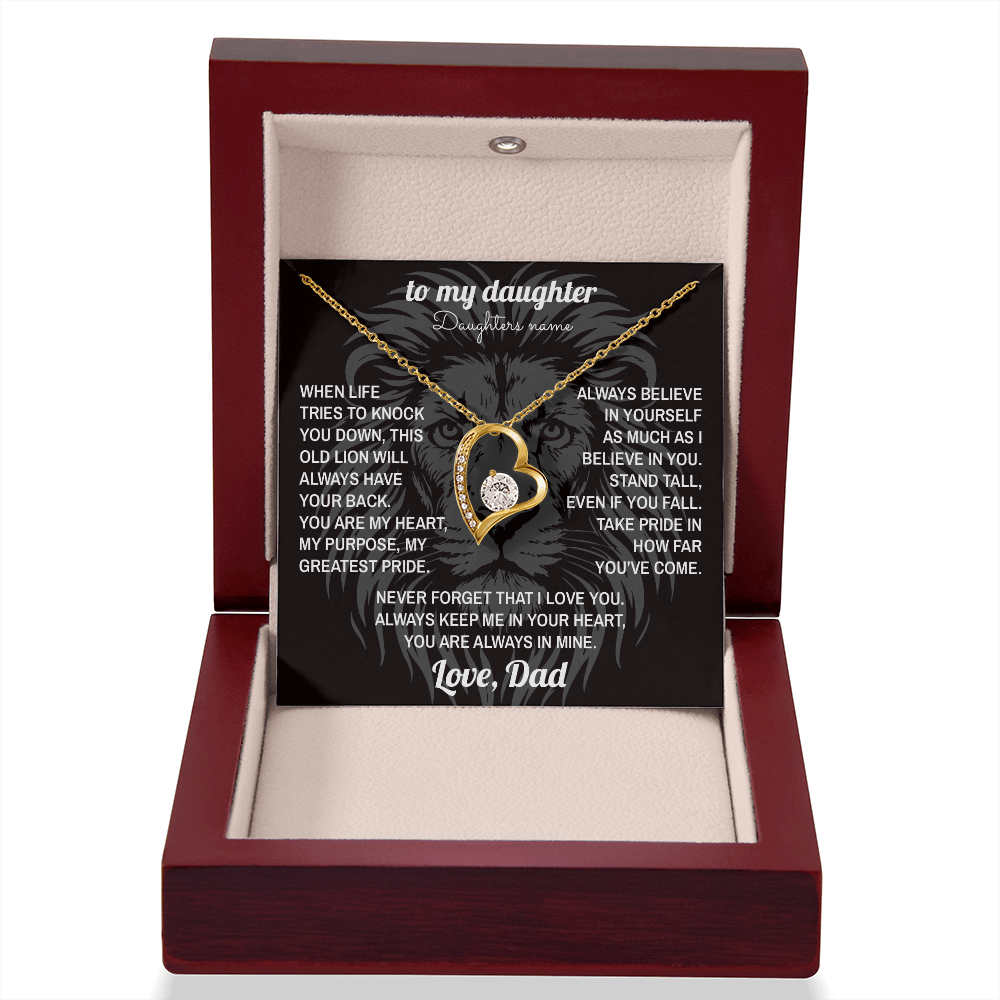 Personalized Message Card: To My Daughter (Daughter's name here) - When life tries to knock you down, this old lion will always have your back. You are my heart, my purpose, my greatest pride. Always believe in yourself as much as I believe in you. Stand tall, even if you fall. Take pride in how far you’ve come. Never forget that I love you. Always keep me in your heart, you are always in mine. Love, Dad