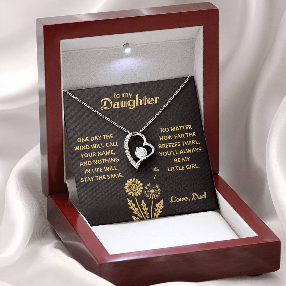 Personalized Message Card: To My Daughter. One day the wind will call your name, and nothing in life will stay the same. No matter how far the breezes twirl, you’ll always be my little girl. Love, Dad