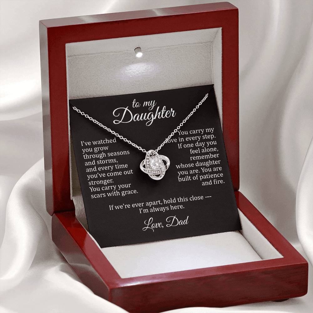 Personalized Message Card: To My Daughter. I’ve watched you grow through seasons and storms, and every time you’ve come out stronger. You carry your scars with grace. You carry my love in every step. If one day you feel alone, remember whose daughter you are. You are built of patience and fire. If we’re ever apart, hold this close — I’m always here. Love, Dad.