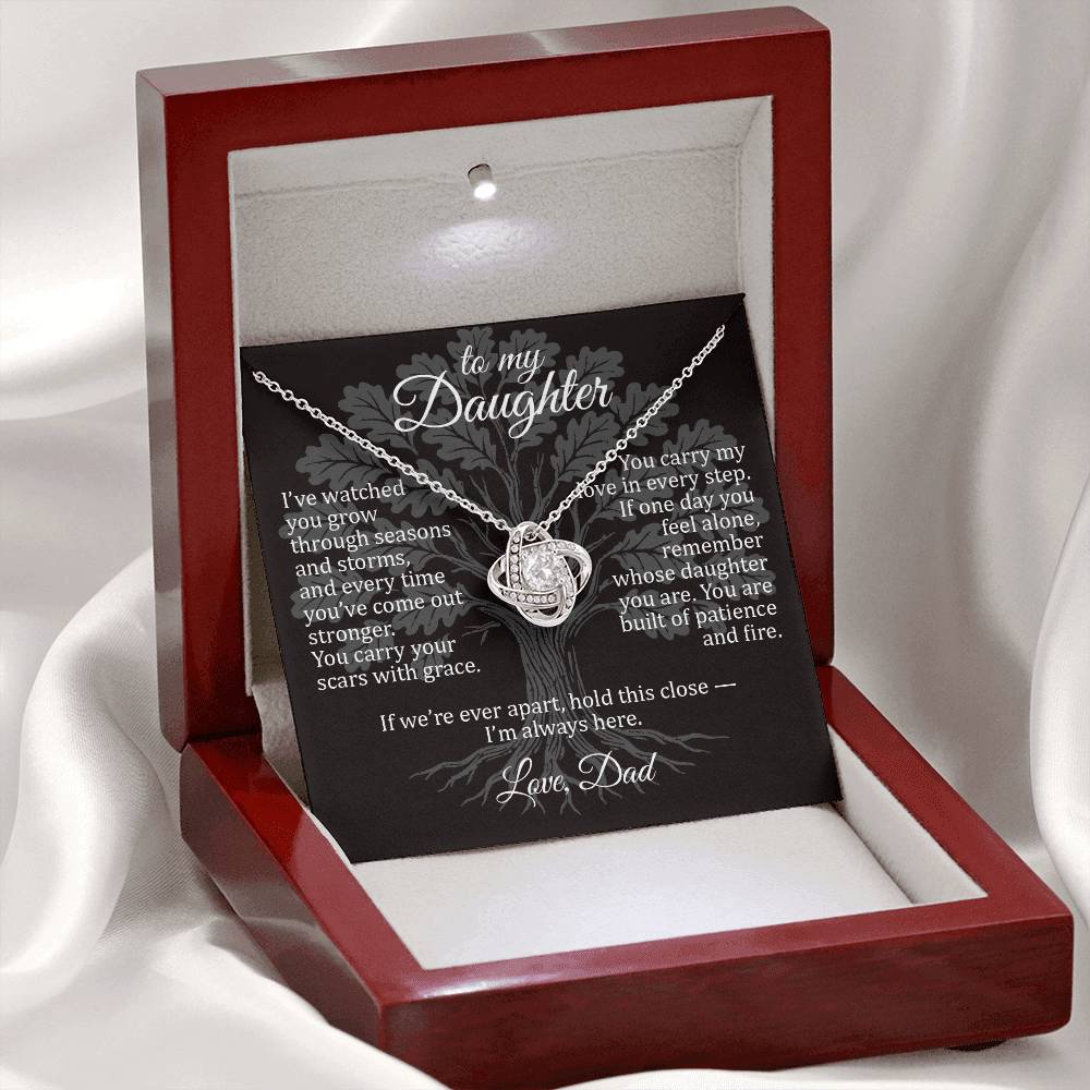 Personalized Message Card: To My Daughter. I’ve watched you grow through seasons and storms, and every time you’ve come out stronger. You carry your scars with grace. You carry my love in every step. If one day you feel alone, remember whose daughter you are. You are built of patience and fire. If we’re ever apart, hold this close — I’m always here. Love, Dad.
