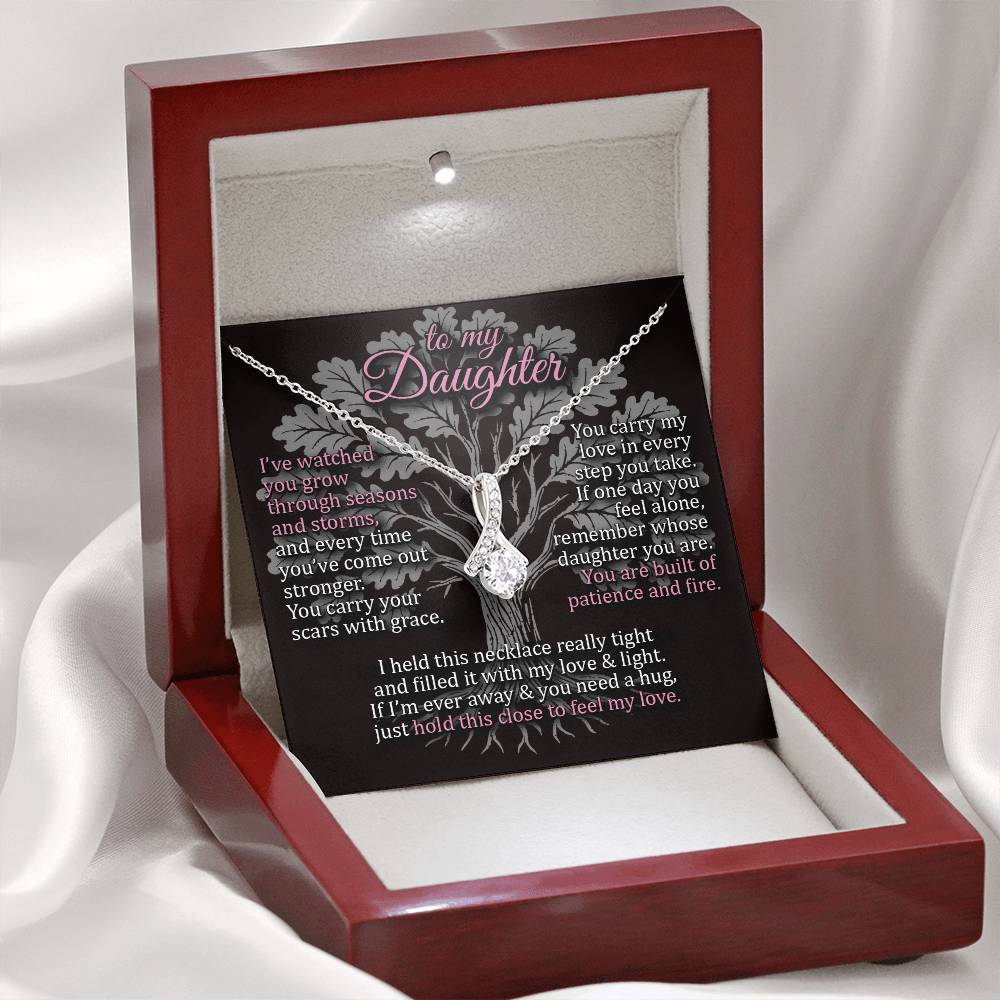 Personalized Message Card: To My Daughter - I’ve watched you grow through seasons and storms, and every time you’ve come out stronger. You carry your scars with grace. You carry my love in every step you take. If one day you feel alone, remember whose daughter you are. You are built of patience and fire. I held this necklace really tight and filled it with my love and light. If I’m ever away and you need a hug, just hold this close to feel my love.