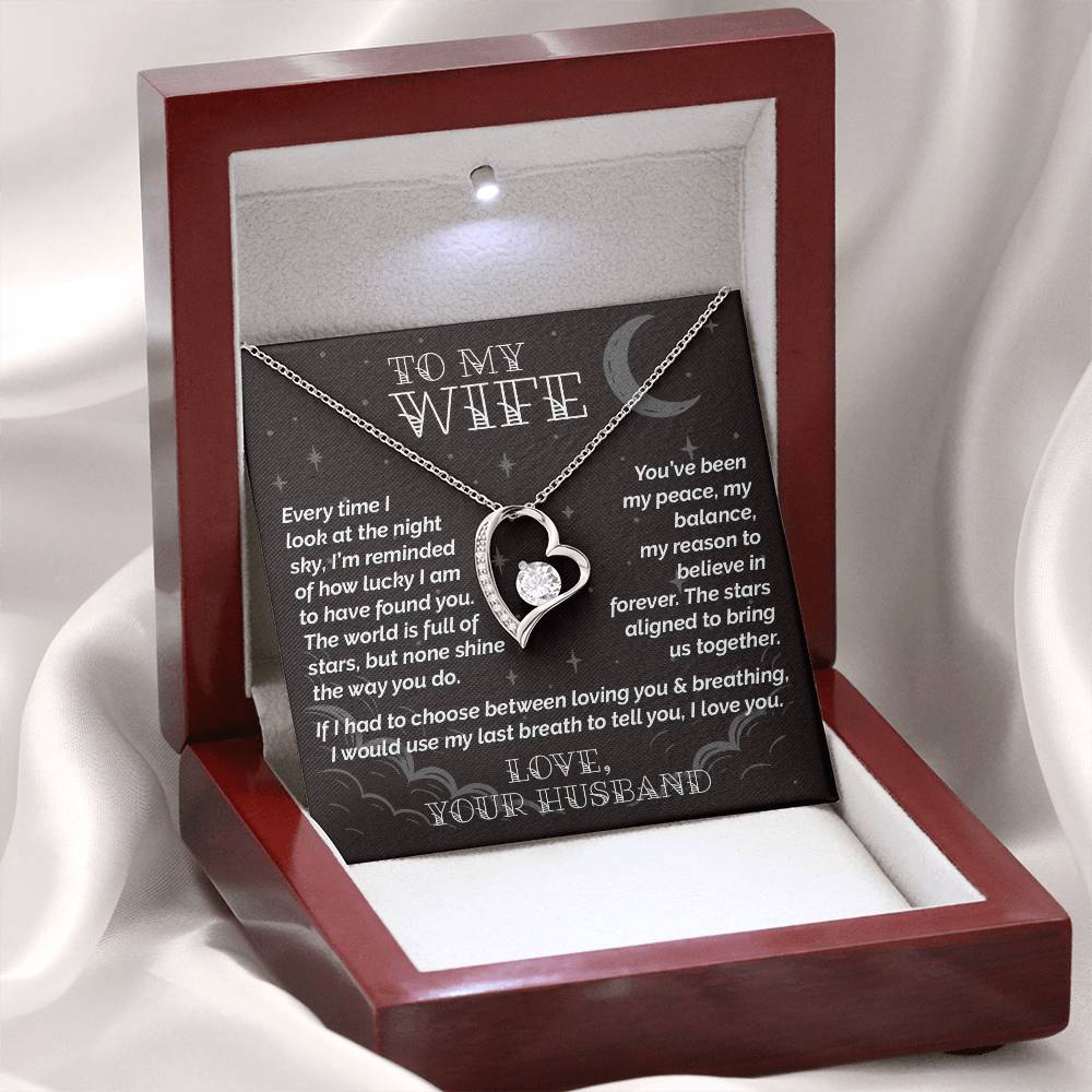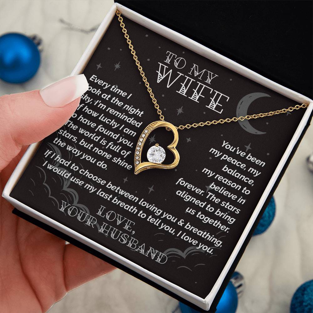Personalized Message Card: To My Wife. Every time I look at the night sky, I’m reminded of how lucky I am to have found you. The world is full of stars, but none shine the way you do. You’ve been my peace, my balance, my reason to believe in forever. The stars aligned to bring us together. If I had to choose between loving you and breathing, I would use my last breath to tell you I love you. Love, Your Husband