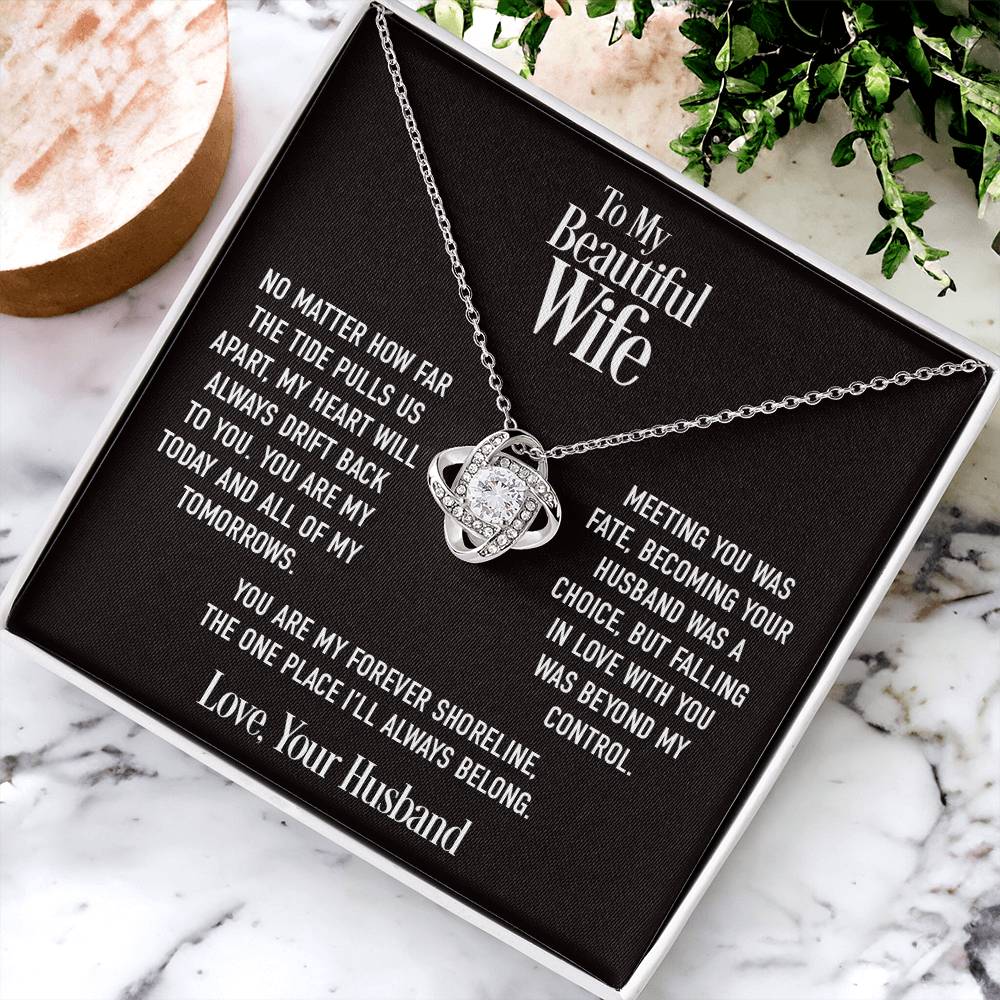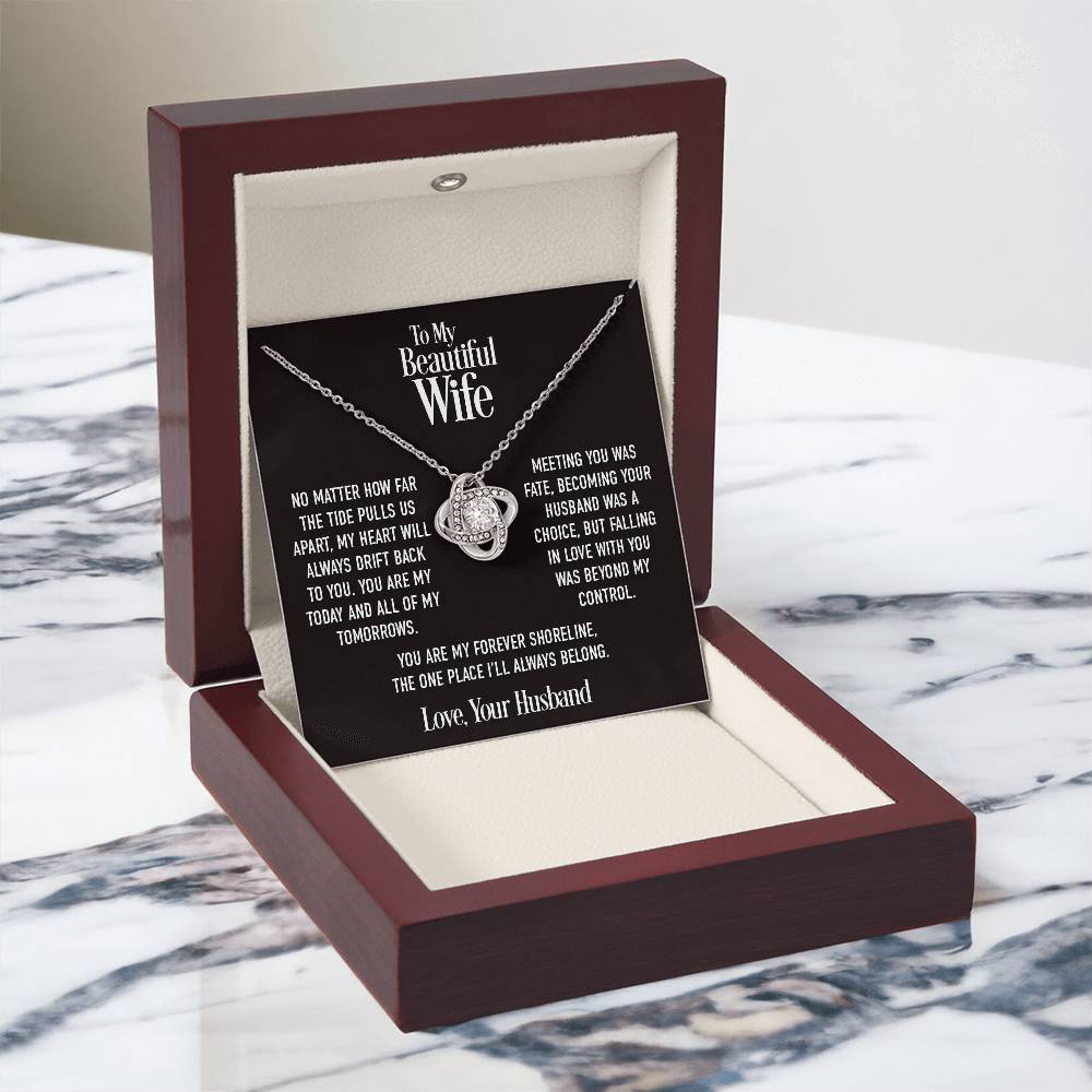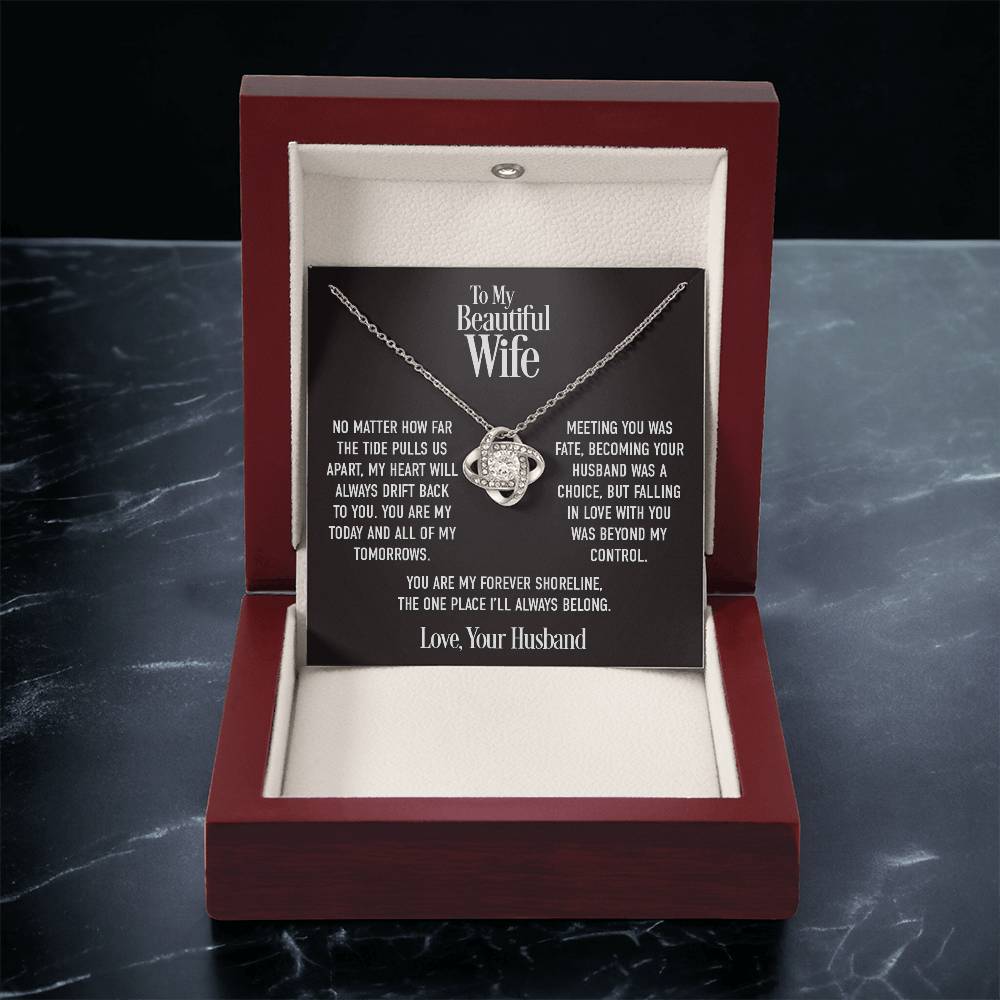 Personalized Message Card: To My Beautiful Wife. No matter how far the tide pulls us apart, my heart will always drift back to you. You are my today and all of my tomorrows. Meeting you was fate, becoming your husband was a choice, but falling in love with you was beyond my control. You are my forever shoreline, the one place I’ll always belong. Love, Your Husband